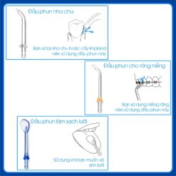 | Loại đầu phun | Bộ đầu phun, Đầu phun cơ bản, Đầu phun cho răng niềng, Đầu phun cho răng nha chu, Đầu phun vệ sinh lưỡi, Đầu phun bàn chải |