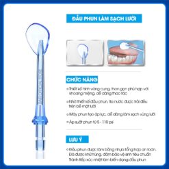 – Một đầu xịt chỉnh nha, dành cho người niềng răng (lực xịt nhẹ nhàng, chà bề mặt răng, nước sẽ rửa trôi cặn bẩn)